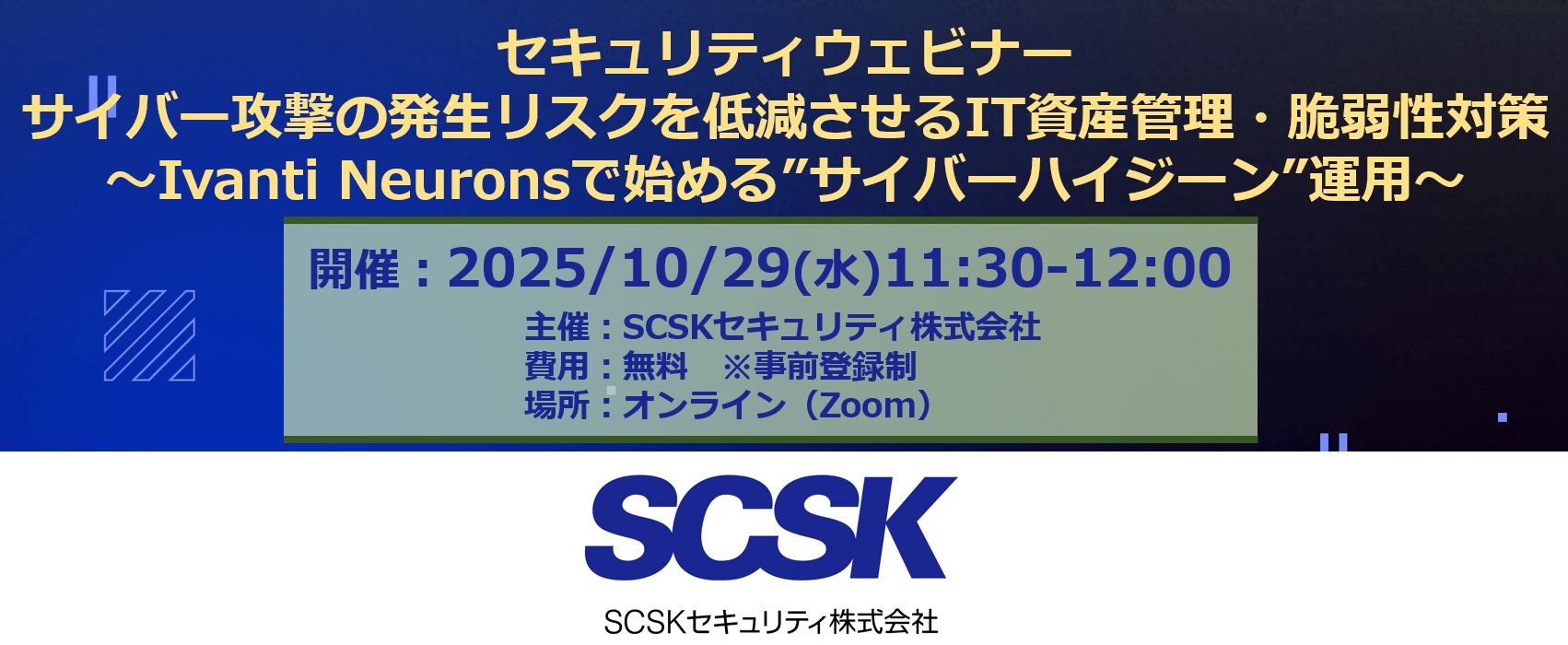 本セミナーでは、お客様のIT資産管理から脆弱性対策までの運用を継続的に支援するSCSKセキュリティの新サービス「サイバーハイジーン支援サービス」のご紹介をいたします。